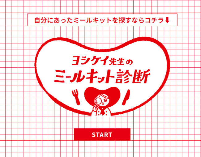 ヨシケイのシンボルマークをモチーフにしたキャンペーンキャラクター「ヨシケイ先生」が誕生。特設サイトでは、「ヨシケイ先生」がおすすめのメニューコースを教えてくれる「ミールキット診断」を実施します。