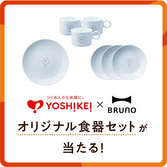 本キャンペーン期間中には、人気メニューや秋の食欲をかきたてる新たな特別メニューの販売など、毎週楽しいメニュー企画を実施します。さらに、対象期間中のミールキットご購入で、YOSHIKEI×BRUNOオリジナル食器セットが当たるプレゼントキャンペーンを実施します。