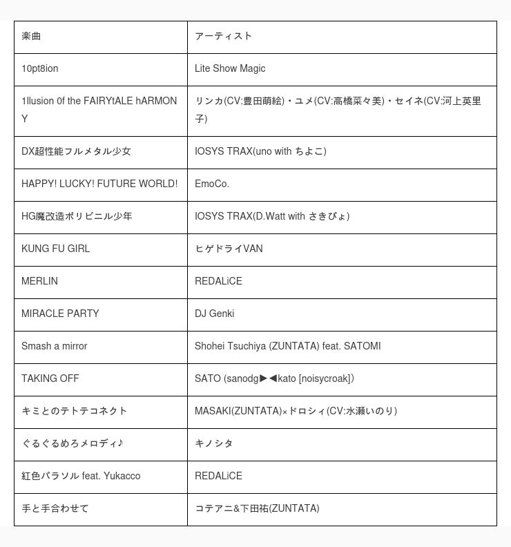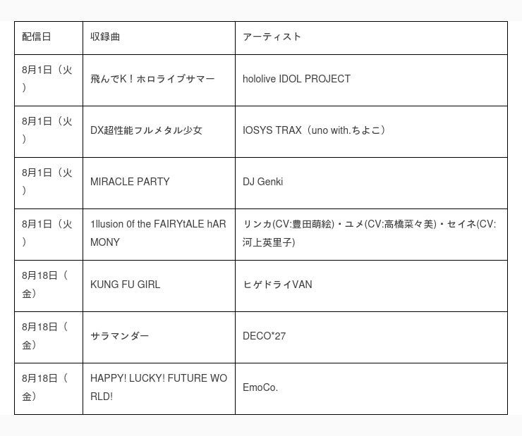 2023年8月は、『グルーヴコースター』コラボレーションとして、「MIRACLE PARTY / DJ Genki」、「1llusion 0f the FAIRYtALE hARMONY / リンカ(CV:豊田萌絵)・ユメ(CV:高橋菜々美)・セイネ(CV:河上英里子)」など、『グルーヴコースター』オリジナル楽曲5曲を含む全7曲が追加されます。