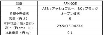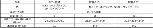 『ソフトクーラー(RFD-0051/0151/0201)』 仕様一覧