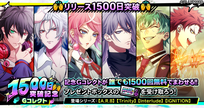 本作『ヒプノシスマイク -Alternative Rap Battle-』がリリースから1500日を突破していることを記念し、どなたでも無料で〈1500回〉Gコレクトを回せるキャンペーンを実施しています。期間中のログインで専用アイテム「1500日突破記念Gコレチケット:10回」を150枚プレゼント中です。