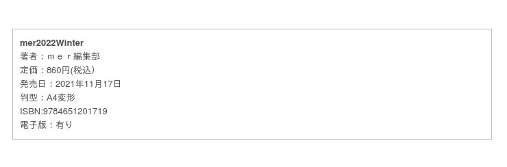 株式会社 ワン・パブリッシング(東京都台東区/代表取締役社長:廣瀬有二)は、11月17日に約2年半ぶりにファッション誌『mer2022Winter』を発売(※)します。本日9月17日より全国のTSUTAYA(https://tsutaya.tsite.jp/news/book/41575834/)と、他一部書店、TSUTAYA オンラインショッピング(https://shop.tsutaya.co.jp/book/product/9784651201719/)にて予約を開始いたしました。