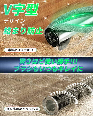 【毛が絡まないブラシ】新型デザインの絡まり防止ローラーブラシで、V字型デザインのブラシ及び内部の凹凸設計があり、吸引する時、小さな空気の渦輪が発生し、髪の絡まりを効果的に防止できます。つまり、お手軽で、驚きほど使い勝手な掃除機です。