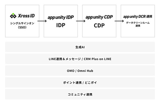 今後もID共通化・活用領域での機能開発として、ID統合によって蓄積した顧客情報の分析・活用のためのCDP機能、そしてそのデータを外部のプラットフォームと安全にsyncするDCR(データクリーンルーム)連携機能まで一気通貫で提供できるようにしたいと考えています。加えてLINEやメールによるCRM、ポイントやランクプログラム、店舗やアプリとの連動、 コミュニティツールとの連携、生成AIの活用も強化し、ID、ファーストパーティデータ活用にまつわる様々なニーズに応えられる状態を目指します。