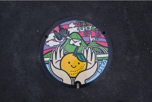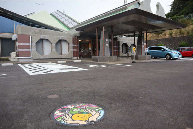 市内の中山間地域の活性化と下水道事業の普及啓発を目的としたPRマンホール蓋を、リニューアルに合わせて設置しました。