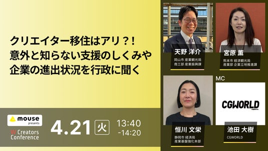 13:40 - 14:20【クリエイター移住はアリ? 意外と知らない支援のしくみや企業の進出状況を行政に聞く】