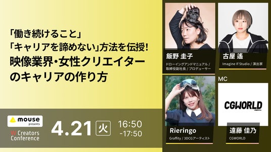 16:50 - 17:50【「働き続けること」「キャリアを諦めない」方法を伝授!映像業界・女性クリエイターのキャリアの作り方】