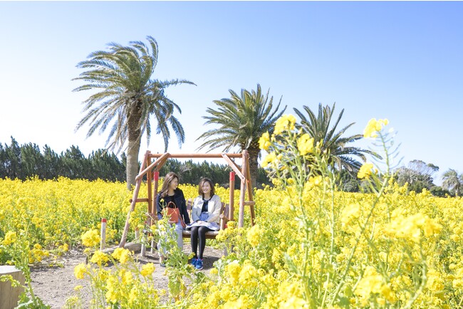 メイン会場の「菜の花ガーデン」一面の菜の花畑とそこで開催される「見て、食べて、遊んで楽しい」イベントの数々を楽しめます。