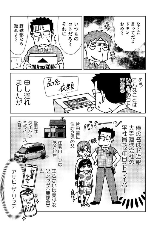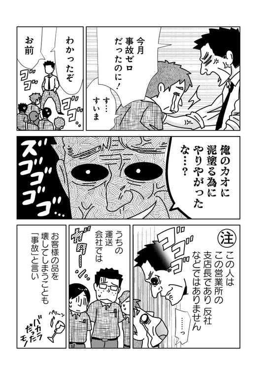 2024年問題で揺れた運送会社のトラックドライバーの現実を描く。基本給は七万円、タイムカードを押した後のサービス残業、備品はすべて自費…etc.。ブラックと呼ばれるにふさわしい仕事内容から、お客さんには言えない業界内での悪行などもすべて暴きます。