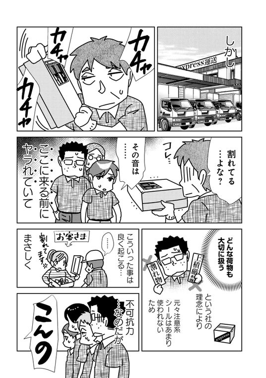 運送会社のブラックな労働環境もさることながら、自分たちの手元に届く荷物がどのように扱われているのかも見どころ。ワレモノ指定がないと蹴っ飛ばしたり、投げたりは日常茶飯事。汚れたってシールで隠す。そんな運送業界の裏側が盛りだくさん。