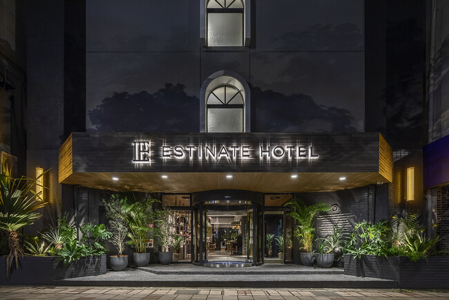 旅人とローカルが集うライフスタイルホテル。旅の行き先で必ず滞在するホテル。ESTINATE HOTEL 那覇は単なる目的地としての滞在場所ではなく、宿泊ゲスト、立ち寄るローカルなどホテルにアクセスする人々との情報交換によって新たな旅の行き先が決まる場所。Estinate という名称は「目的地―DESTINATION―」から頭文字のDをはずした ESTINATIONという造語を動詞に派生させて生まれました。不完全な旅の中にこそ様々な「次」が見える、そんな発見にあふれたホテルでありたいというコンセプトを DESTINATION からDを外すことで「不完全さ」を、そしてアルファベットでD の「次」に来る E が新たに頭文字をして顔をだすことで「“次の発見”」を表現しました。