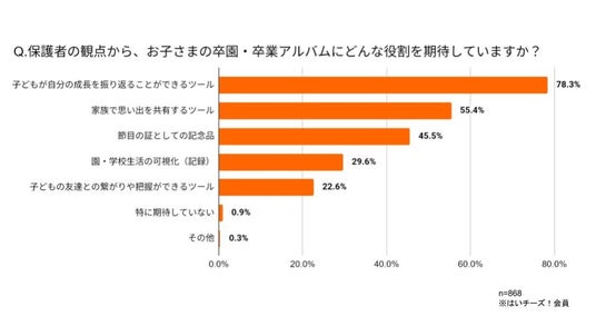 ・「子どもが自分の成長を振り返ることができるツール(78.3%)」次いで「家族で思い出を共有するツール(55.4%)」としての役割に注目