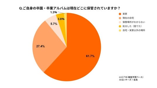 ・保護者自身の卒園・卒業アルバムは61.7%が「実家」に保管