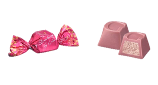 サクサクとしたクランブルの入った、ホワイトチョコレートのストロベリームースをルビーチョコレートで包みました。