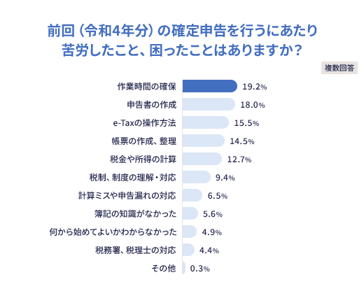 確定申告における具体的な課題は「作業時間の確保」が最も多い