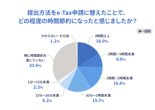 e-Tax利用により、16.0%の事業者が3時間以上の時間節約効果を実感