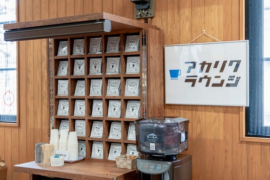 「アカリクラウンジ」のシンボルでもあるコーヒーラック