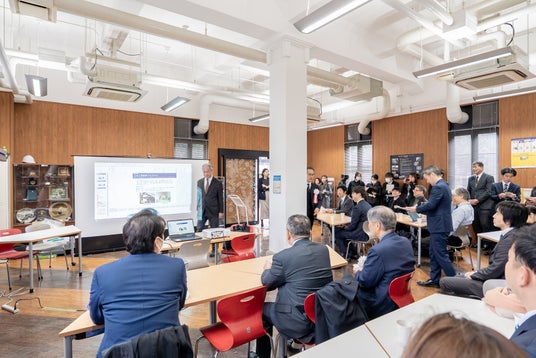 「アカリクラウンジ 熊本大学」内で、内覧会および利用者に提供されるコーヒーの試飲会を実施しました。また、熊本大学工学部の概況や取り組みが参加者に紹介されました。
