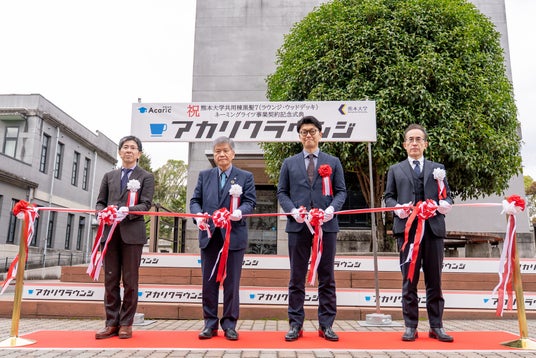 株式会社アカリク(本社:東京都渋谷区、代表取締役:山田 諒、以下 アカリク)は、熊本大学(熊本県熊本市、学長:小川 久雄)と締結したネーミングライツ事業契約の記念式典を熊本大学と共催し、2025年3月6日(木)、熊本大学 黒髪南キャンパス内「アカリクラウンジ」前にて執り行いました。