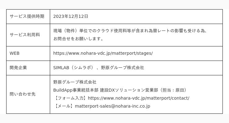 野原グループは、2020年8月からMatterport社の日本国内販売リセラーを務めており、建設・不動産業界におけるデジタルツイン(3D/VR空間モデル)の活用支援に注力しています。