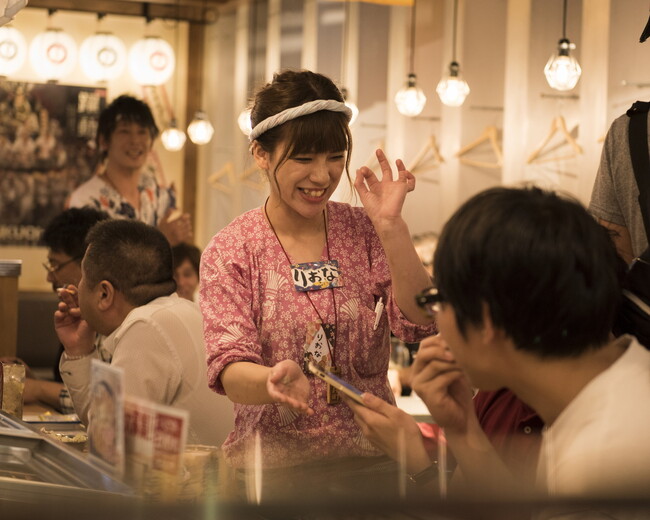中洲の屋台村を完全再現。祭り囃子をBGMに、粋の良いスタッフが創る熱気の渦。その雰囲気をご堪能