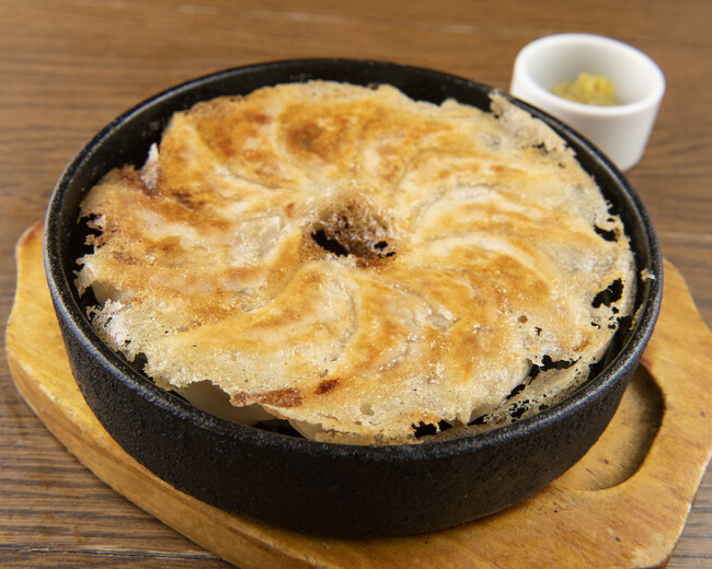 お店で毎日手包みし、肉の旨みと野菜の甘みを閉じ込め、鉄鍋で焼き上げた餃子は、外はカリッと皮はモチッと中はジューシー。ご来店されるお客様のほとんどが注文される看板メニューです。