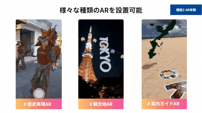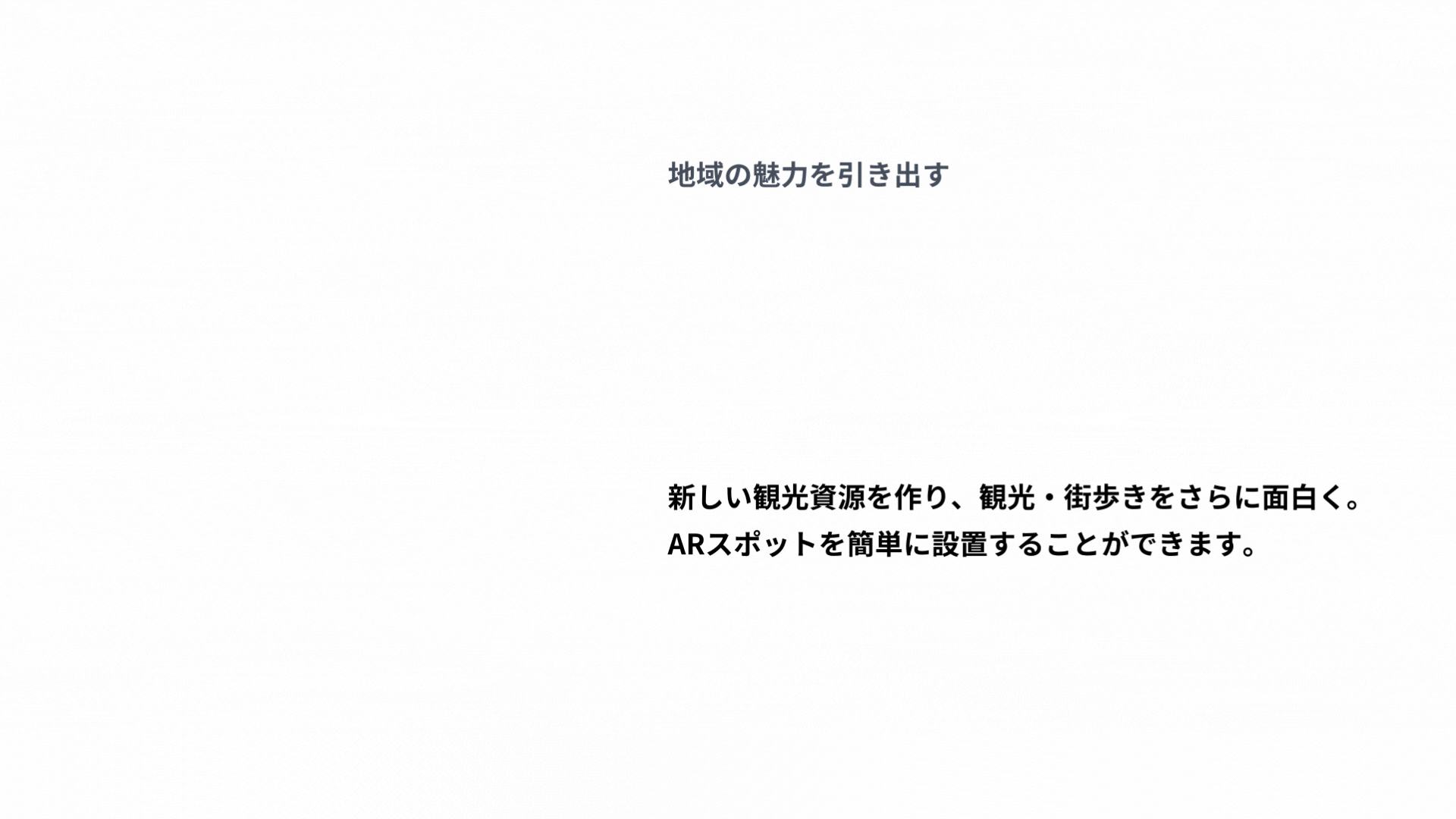 アプリダウンロードの必要がなく、1つの地図から複数のAR観光スポットを楽しむことができます。