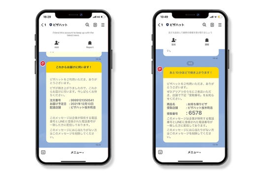 1. ピザの焼き上がりをタイムリーにお知らせ!ピザハットで「LINE通知メッセージ」