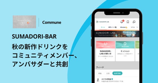 コミュニティサクセスプラットフォーム「Commune(コミューン)」と、カスタマーサクセスマネジメントツール「SuccessHub(サクセスハブ)」を提供するコミューン株式会社は、ファンコミュニティにCommuneを活用する「SUMADORI-BAR」が、秋の新作ドリンクをコミュニティメンバー、アンバサダーと共創するイベントを開催したことをお知らせいたします。