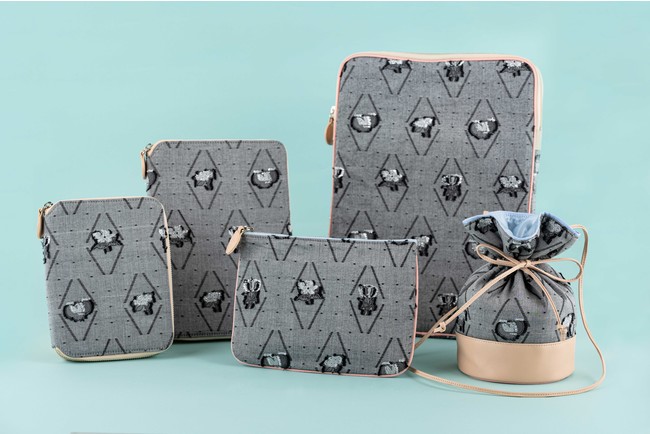 色使いやパイピングなど、ディテールにスパイスの効いた服でファンを増やしているブランド『PYT(プイト)』。新鮮さがありながら時間が経っても古びない、その魅力的なテキスタイルを使って、手帳カバーやPCケース、バッグ、ポーチをつくりました。「Tokyo in bloom/rabbits」は、うさぎや花をモチーフにしたデザイン。あえて裏生地を使うことで、ブラックとシルバーの糸がフリンジのように飛び出した立体的なテキスタイルです。バッグやポーチのパイピング、手帳カバー内側の2色のピンク使いなど、隅々まで手のこんだデザインがほどこされています。