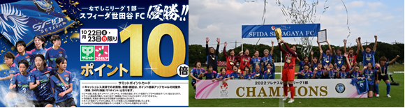 サミットがスポンサー契約をするスフィーダ世田谷FCが、「2022年なでしこリーグ1部」において、見事、初優勝を果たしました。応援していただいた皆さまへの感謝の気持ちと優勝を記念して、10月22日(土)・ 23日(日)の2日間、ポイントアップセールを実施いたします。