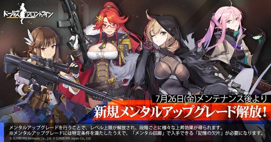「7月26日(金)メンテナンス後」より、人形の秘めた力を引き出し、レベル上限の引き上げ・スキルの追加・専用装備の獲得など大きな変化が起こる「メンタルアップグレード」が可能になる対象に、新たに4名が追加されます。