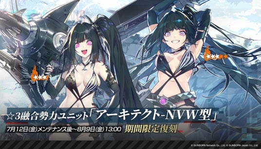 強力な融合勢力ユニットを捕獲できる「捕獲作戦」にて、「7月12日(金)メンテナンス後」より過去の捕獲区域『SPzh3000海戦プラットフォーム』と『「ハリケーン」N2秘密尋問室』が復刻し、それぞれで★3ユニット「アーキテクト-NVW型」と「アデリン」の捕獲が可能になります。