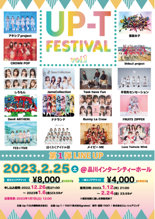 2023年2月25日に開催されるUp-Tが手がけるアイドルフェス「UP-T FESTIVAL vol.1」に出演のアイドル LINE UP第1弾を公開いたします。