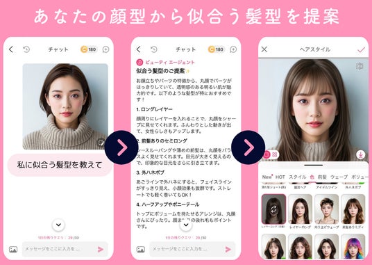 顔写真と会話を組み合わせ、ユーザー一人ひとりのパーソナルカラー、肌悩み、メイクの好みなどに合わせて、最適な製品や美容ルーティン、メイクを提案するAIエージェントです。