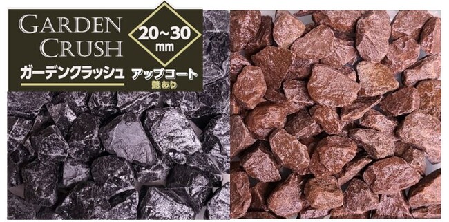 形や色、大きさにより多種多様な庭園砂利。どんな庭園砂利を使用するかで、お庭の印象は大きく変わります。この度、コメリで人気の「ガーデンクラッシュ」シリーズに新たなラインナップとして「ガーデンクラッシュ アップコート」が追加となります。本製品は、砂利に特殊表面コートを施すことで、砂利に濡れたような艶を出し、高級感のある色でお庭を演出します。使用しているコーティング剤は熱に強く、夏の日差しでも簡単に剥がれ落ちません。カラーは、お庭になじみやすいブラウンとブラックをご用意。すでに販売中のガーデンクラッシュ4種と合わせ、全6種のラインナップとなります。