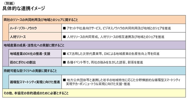 岩手銀行とNTT東日本が緊密に相互連携し、保有するリソースを活用した創造的な協働の 取り組みを展開することにより、地域が抱える諸課題に迅速かつ適切に対応し、地域経済の活性化や持続可能な地域社会の実現を図ることを目的とする