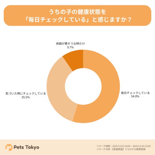 残りの約半数は「気づいた時にチェックしている」「体調が悪そうな時だけ確認している」と回答しました。