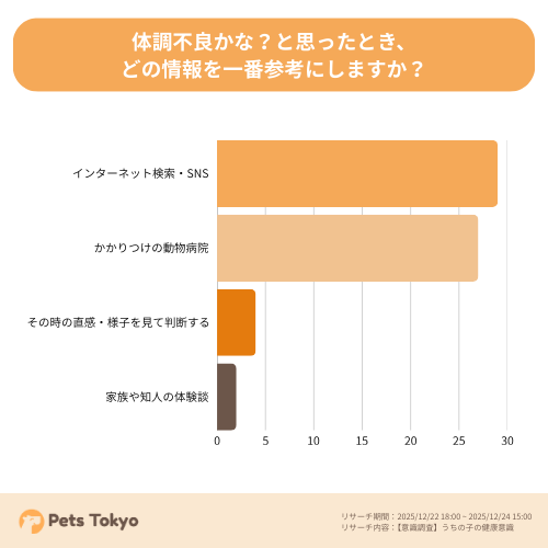 異変を感じた際も「自己判断」や「情報検索」に頼りがちな飼い主が多いことがうかがえます。