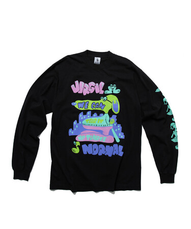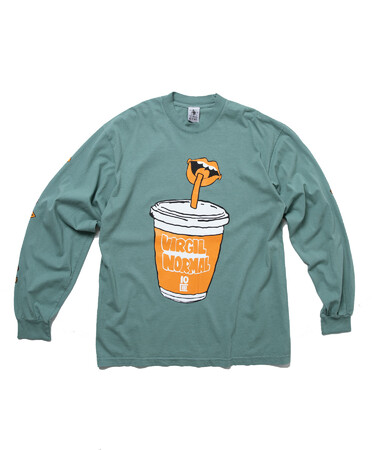 また同タイミングでアパレルを12型販売。VIRGIL NORMALらしいグラフィックのスウェットやロングスリーブTEEを販売いたします。