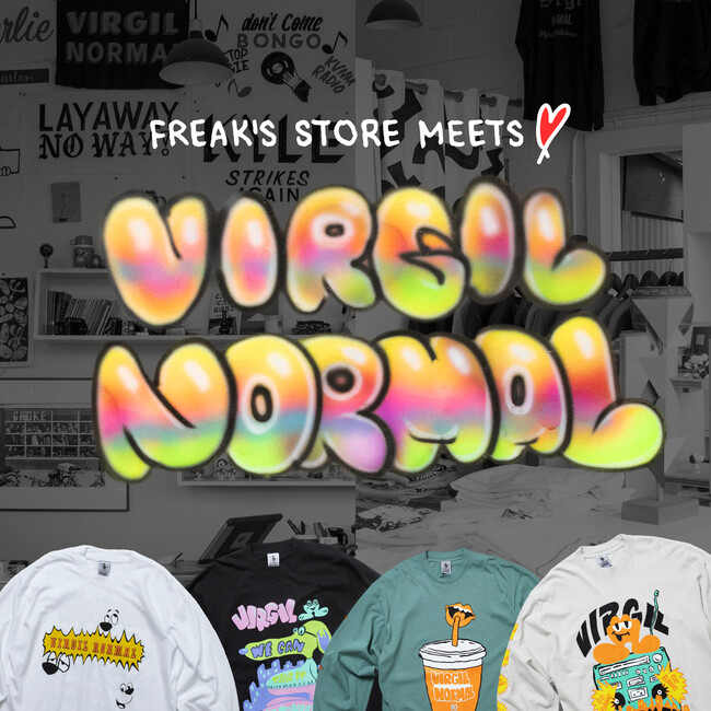Los Angelesのシルバーレイクに店舗を構え、アーティストのCharlie Stauntonとコスチュームデザイナー兼スタイリストのShirley Kurataが運営するセレクトショップ【VIRGIL NORMAL】のアートとアパレルアイテムをFREAK'S STOREにて販売いたします。