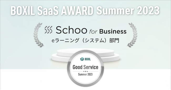 インターネットでの学びや教育を起点とした社会変革を行う株式会社Schoo(本社:東京都渋谷区、代表取締役社長CEO:森健志郎、以下「スクー」)が提供する法人向け研修サービス「Schoo for Business」は、スマートキャンプ株式会社(以下「スマートキャンプ」)が主催する「BOXIL SaaS AWARD Summer 2023」のeラーニング(システム)部門で「Good Service」に選出されました。