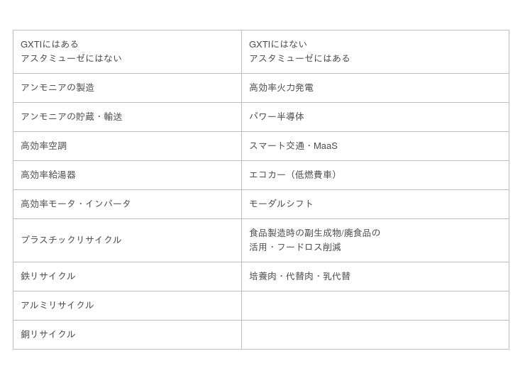 GXTIにはあるが、40の脱炭素技術領域には含まれない技術領域