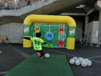 北イベント広場にてキックターゲットを実施します。50点を出した方には、「ニチバン製品の詰め合わせ」または「選手サイン色紙」をプレゼントします。また、参加賞もご用意しています。
