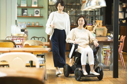ウィルは免許不要で歩行領域を走行できる近距離モビリティです。4機種のうちModel C2は高いデザイン性と5cmの段差乗り越え、後輪を軸にその場で一回転できる小回り能力、リアサスペンションを採用した滑らかな乗り心地などを特長としています(写真右)。