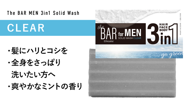 商品名:The BAR MEN 3in1 Solid Wash CLEAR (ソリッドウォッシュMC)