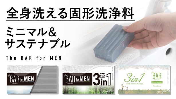 The BARシリーズの第一弾はMakuakeでの先行販売後、リピーターが続出するほどの大反響。「全身洗えますか?」とのユーザーの声をいただいたことがきっかけで、全身洗える固形洗浄料の研究開発をスタートさせました。数百回の試作を重ね、ようやく完成したのがThe BAR 3in1です。