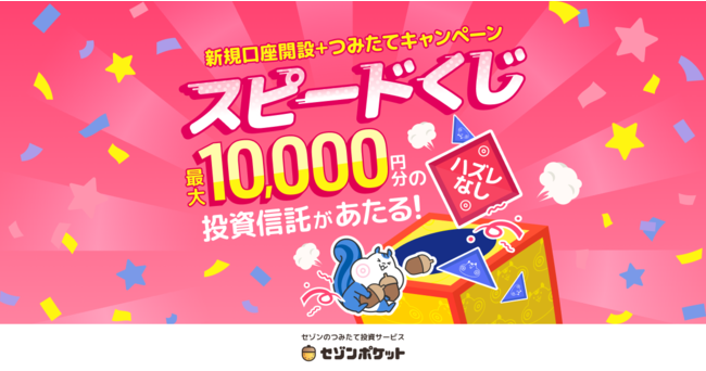次世代金融インフラの提供を通して組込型金融を実現し、金融がもっと暮らしに寄り添う世の中を創るFinatextグループの株式会社スマートプラス(本社:東京都千代田区、代表取締役:小林 紀子、以下「当社」)は、つみたて投資サービス『セゾンポケット』にて、2022年9月1日(木)より最大10,000円の投資信託が当たる「スピードくじ」キャンペーンを開催します。