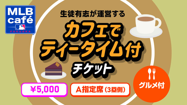 生徒有志が運営するカフェ(BOSS E・ZO FUKUOKA 3F MLB cafe FUKUOKA)で学園生徒がふるまうケーキを楽しみながら優雅なティータイムが楽しめるチケット。ケーキのほかビュッフェを堪能しながら大画面モニターで鷹奉祭の様子を観覧いただけます。