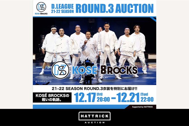 あらゆるステークホルダーへ人生を変える価値を提供し、一人ひとりが「らしく、生きる。」世界の実現を目指すバリュエンスジャパン株式会社(本社:東京都港区、代表:六車 進、以下 当社)は、同社の運営するスポーツチーム公認オークション「HATTRICK (https://auction.hattrick.world/)」にて、2021年12月17日(金)より、 KOSE 8ROCKSとのD.LEAGUE 21-22 SEASON ROUND.3 SPECIAL AUCTIONを開催することをお知らせいたします。
